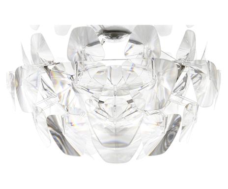 Wie bei einer Explosion sind die verschieden großen übereinander lagernden Methacrylat-Elemente scheinbar wahllos zueinander angeordnet. Scheinbar wahllose Überkreuzungen von Platten im Raum verschaffen diesem Kunstobjekt eine fast energetische Ausstrahlung. Gefertigt wird diese Pendelleuchte nämlich aus unterschiedlich großen Scheiben aus Metacrylat.
